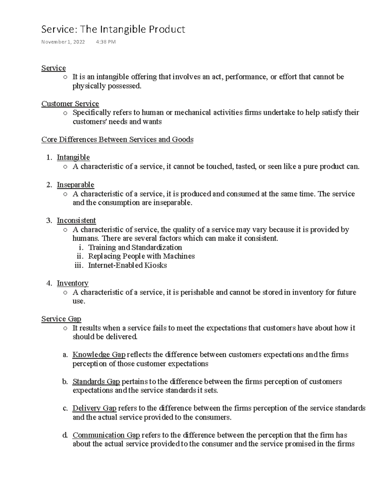 Characteristics and Examples of Service: Intangible, | Course Hero