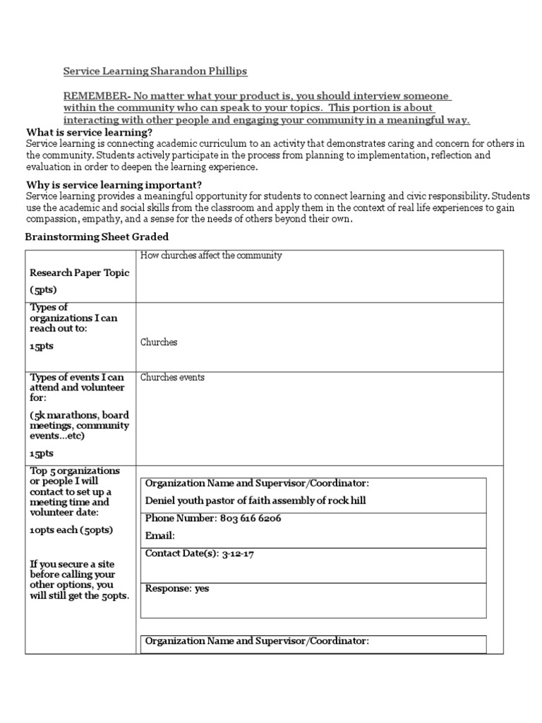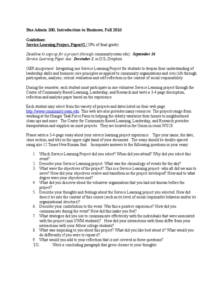 Service Learning Project, Paper#2 Guidelines | PDF | Service Learning ...