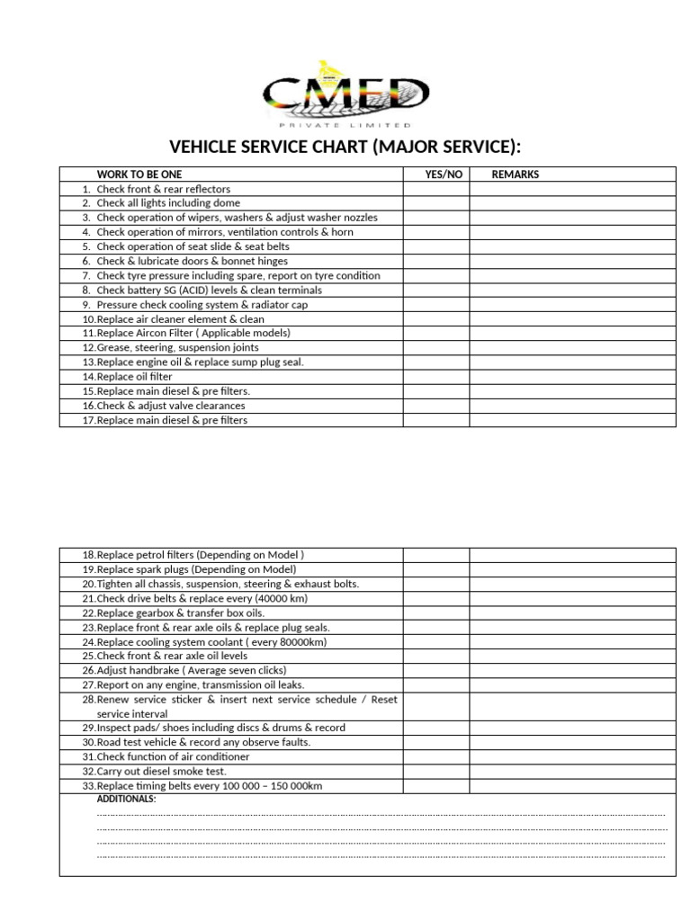 Vehicle Service Chart | PDF
