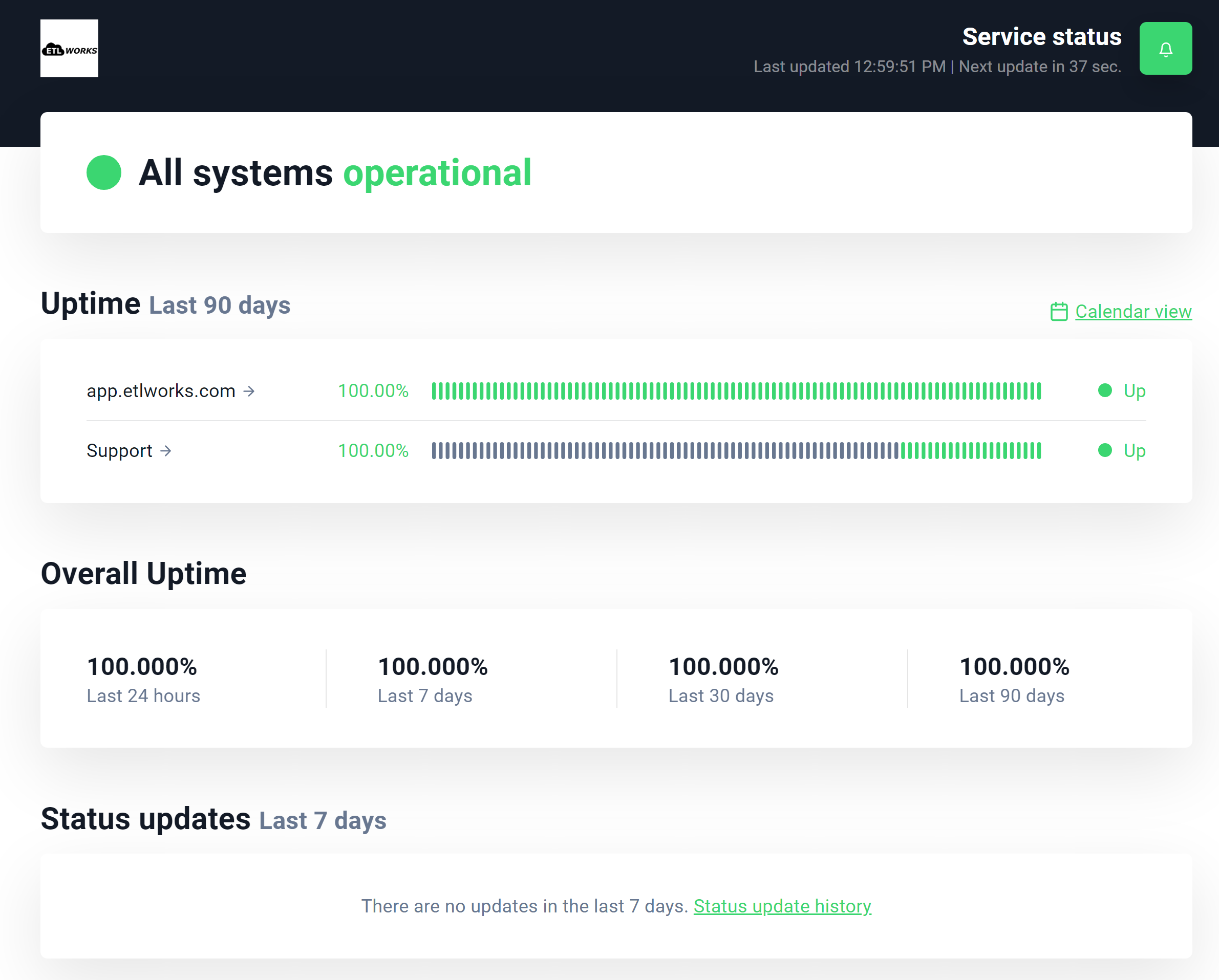 Service status dashboard – Etlworks Support