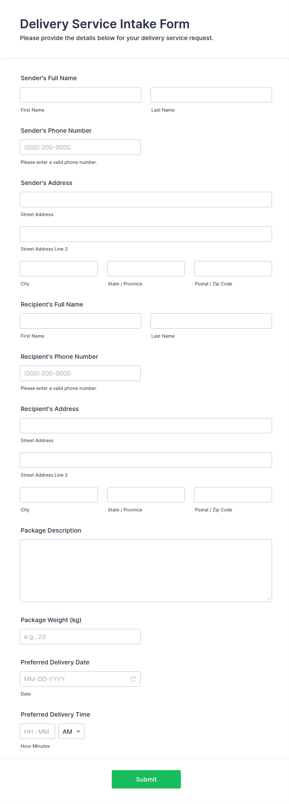 Delivery Service Intake Form Template | Jotform
