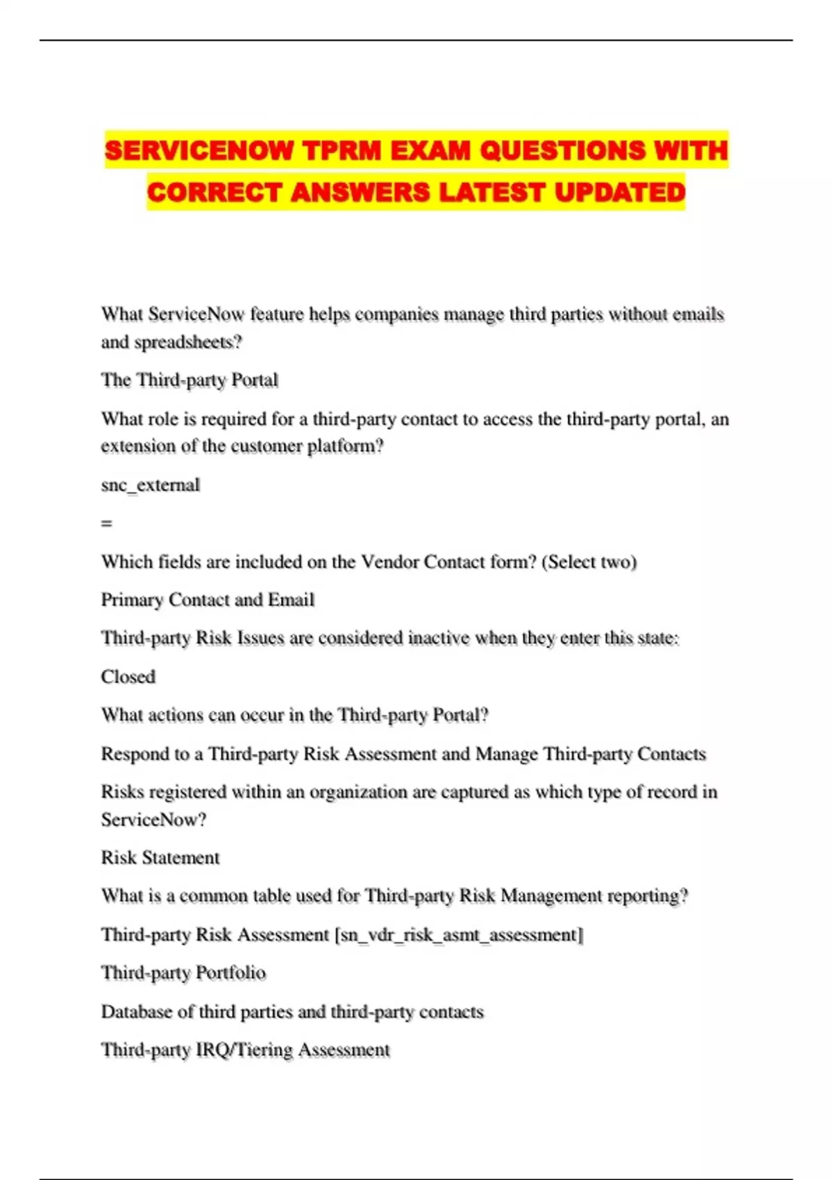 SERVICENOW TPRM EXAM QUESTIONS WITH CORRECT ANSWERS LATEST UPDATED ...