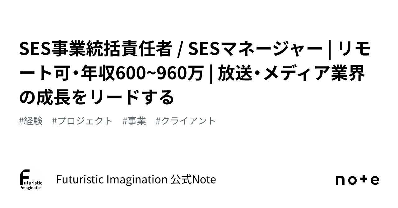 SES事業統括責任者 / SESマネージャー | リモート可・年収600~960万 | 放送・メディア業界の成長をリードする ...