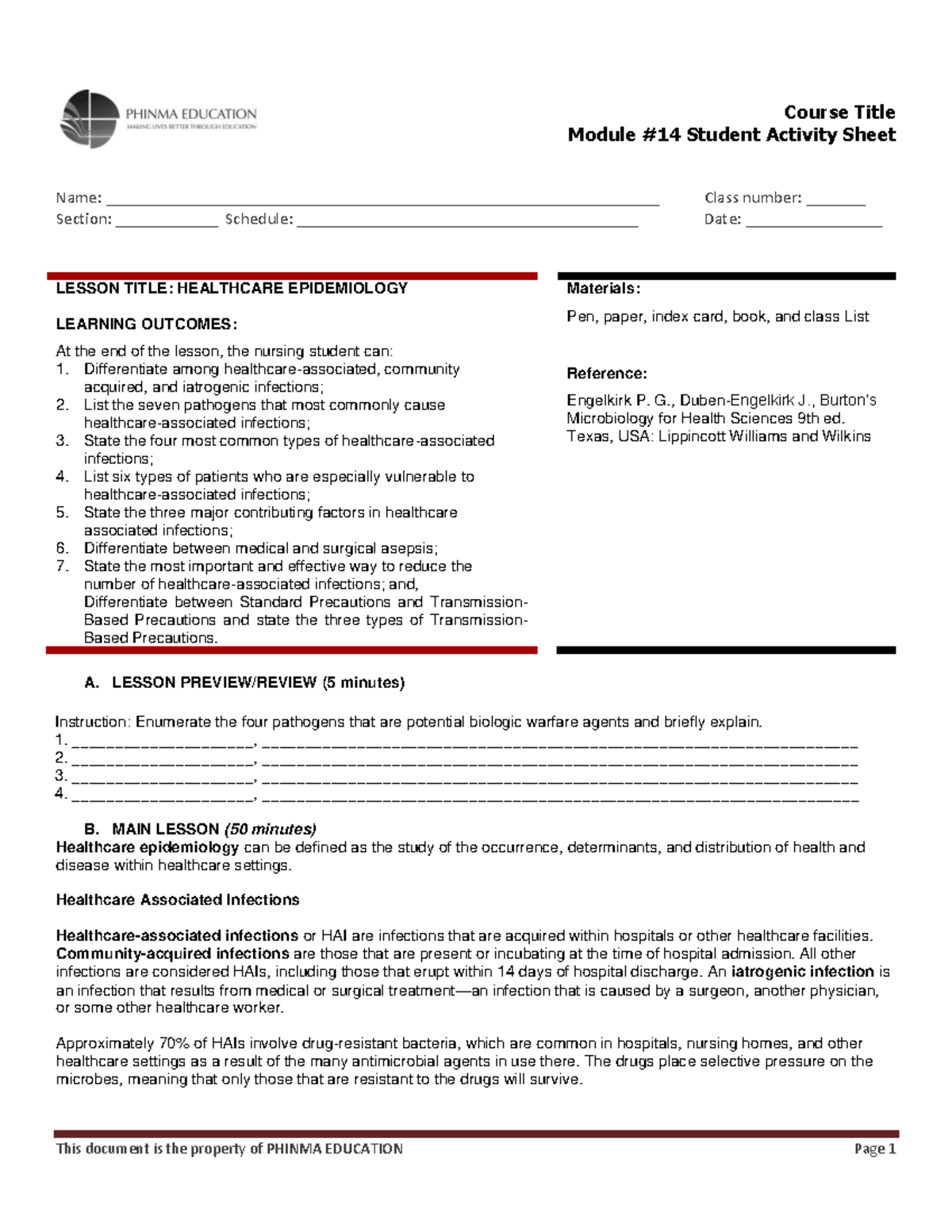 HES032 Lec Session #14 - Module #14 Student Activity Sheet Name: - Studocu