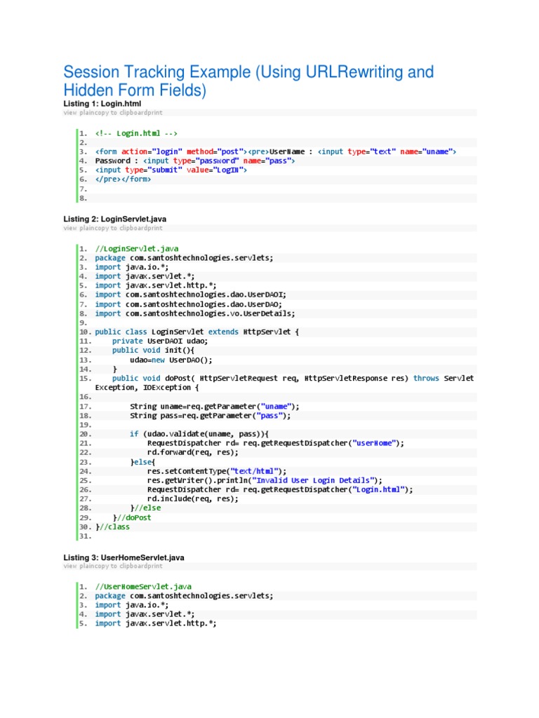 Session Tracking Example (Using Urlrewriting and Hidden Form Fields ...
