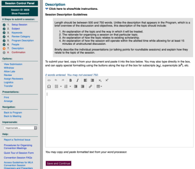 Quick Tour: Session Proposal Form | Modern Language Association