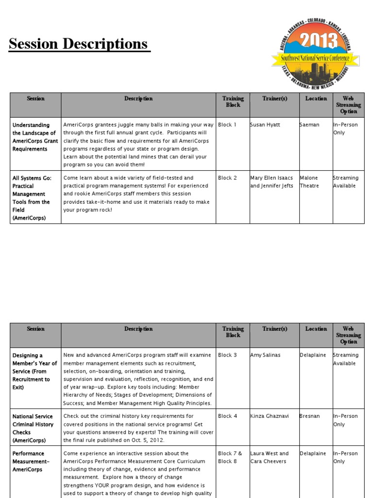 Southwest National Service Conference Session Descriptions | PDF ...