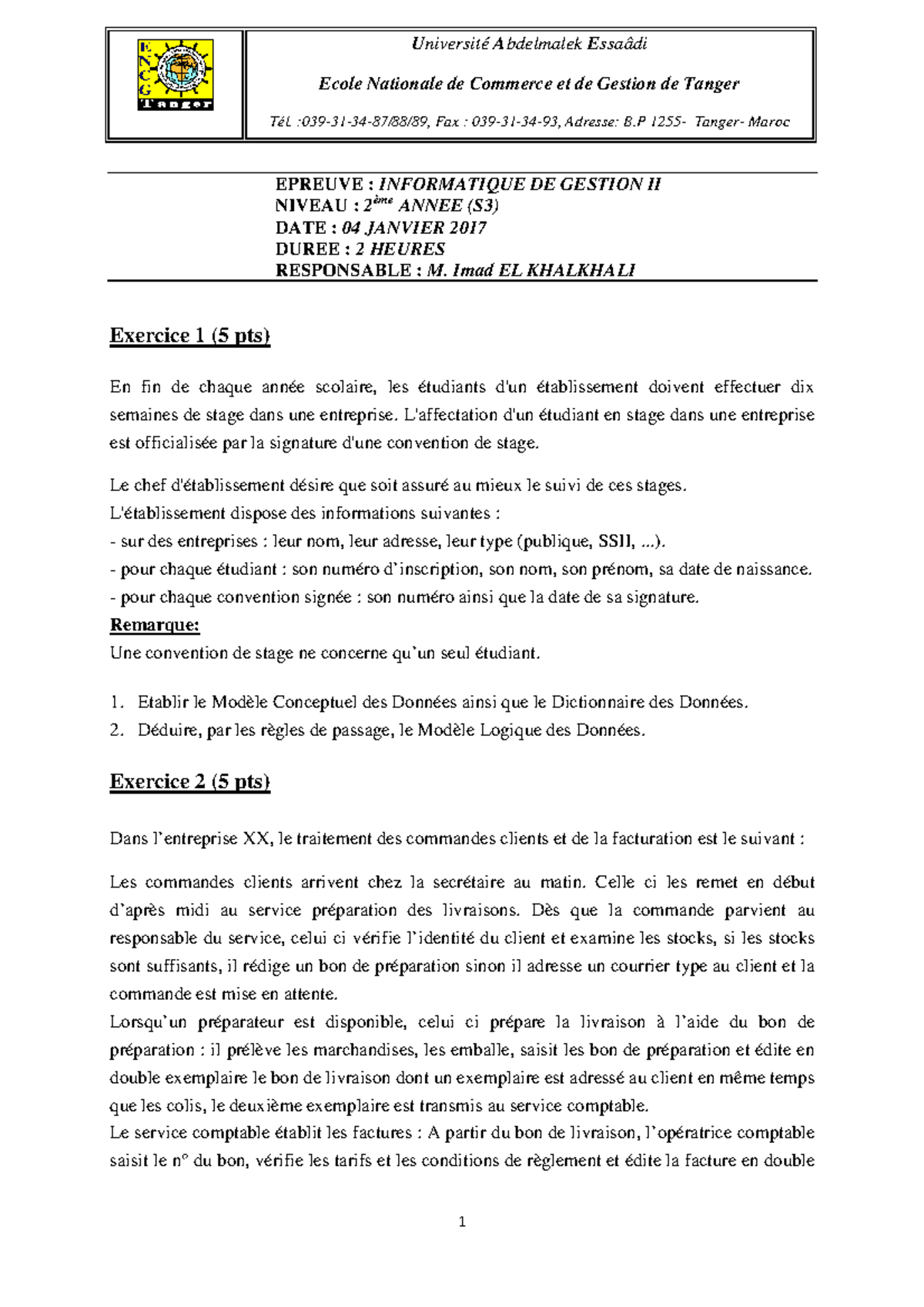 Info de Gestion 2 Session normale 2016 2017 - 1 EPREUVE : INFORMATIQUE ...