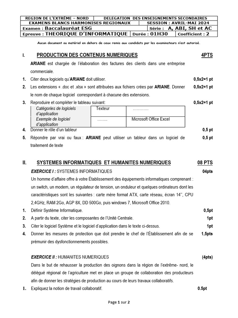 Bac Econmie et Gestion Informatique-Examens Baccalaureat
