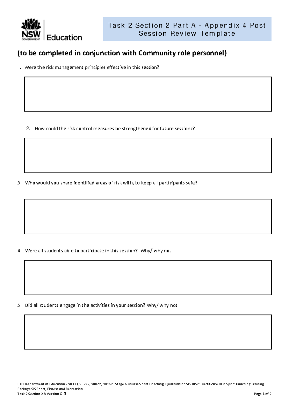 Task 2 Section 2 Part A - Appendix 4 Post Session Review Template - RTO ...