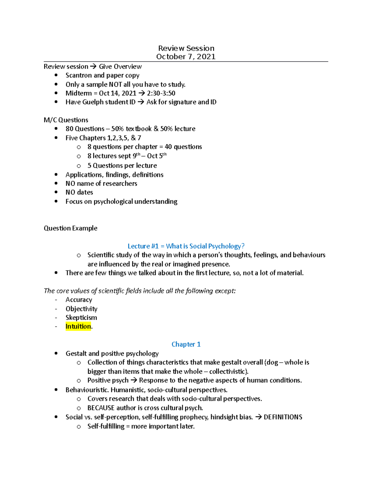 Review Session Notes - Study guide and summary of all unit materials ...