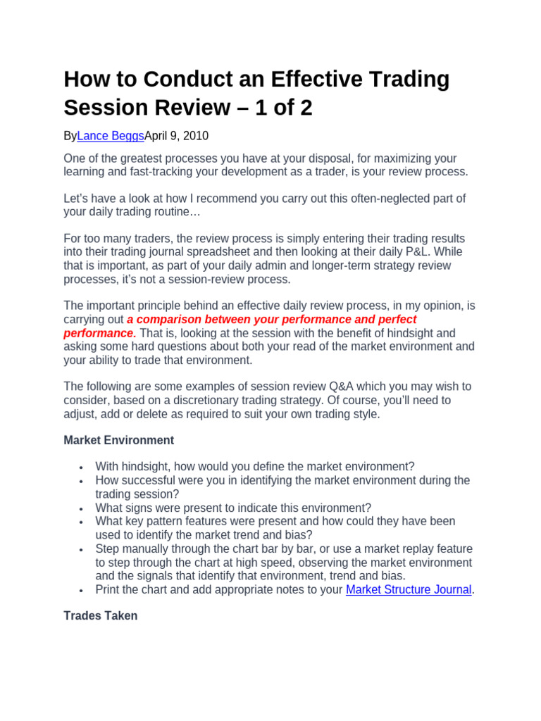 How To Conduct An Effective Trading Session Review | PDF