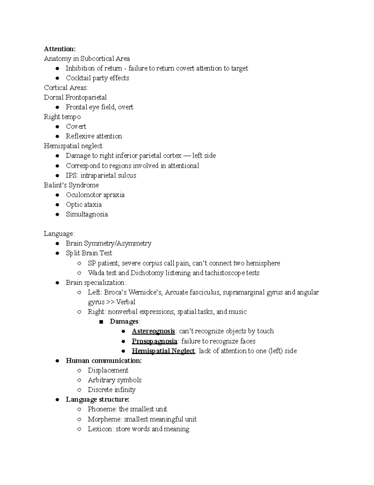 U5 Review Session Note - Attention: Anatomy in Subcortical Area ...