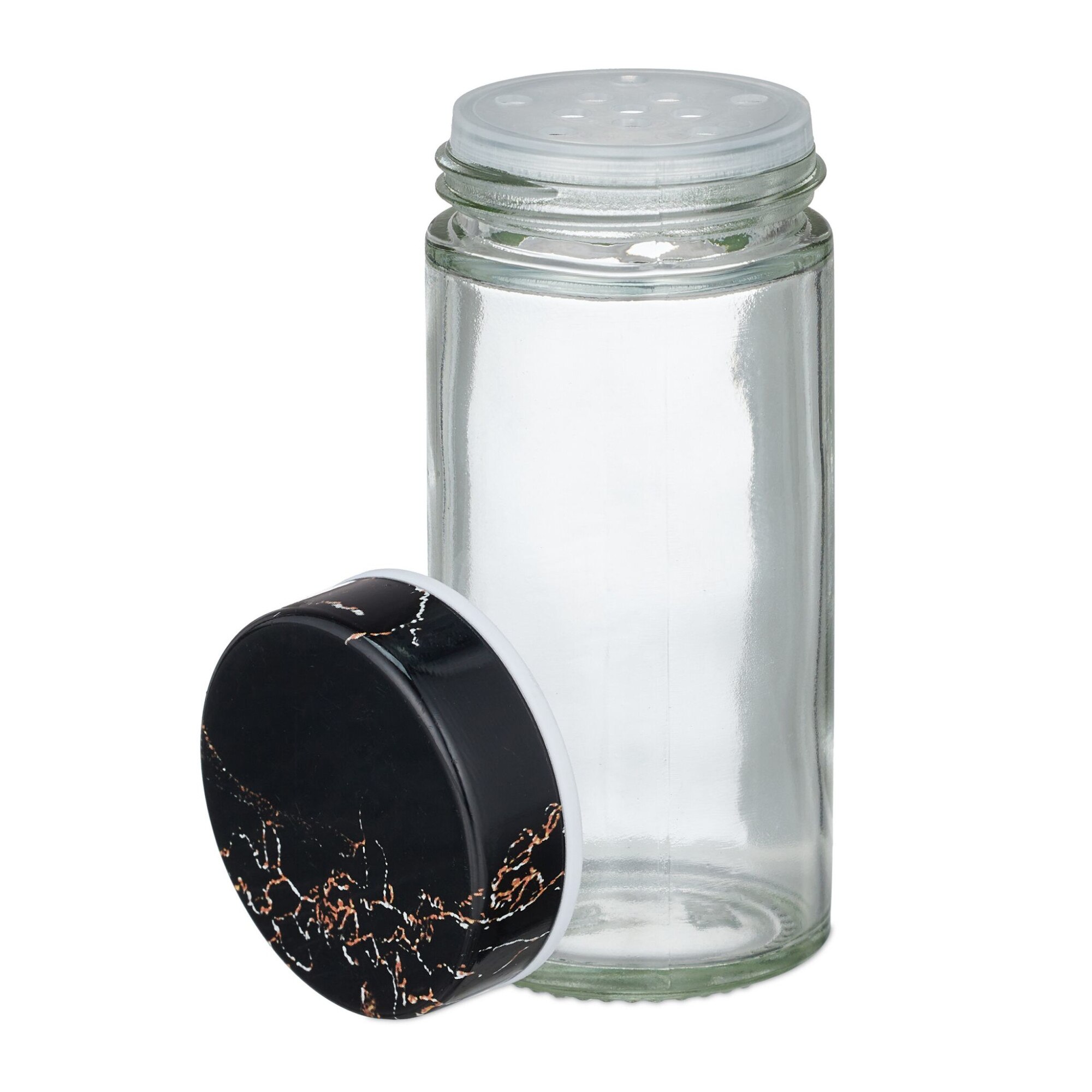Set dispenser condimente, 6 bucati, Sticla, Inox, Transparent, Negru ...