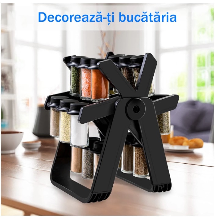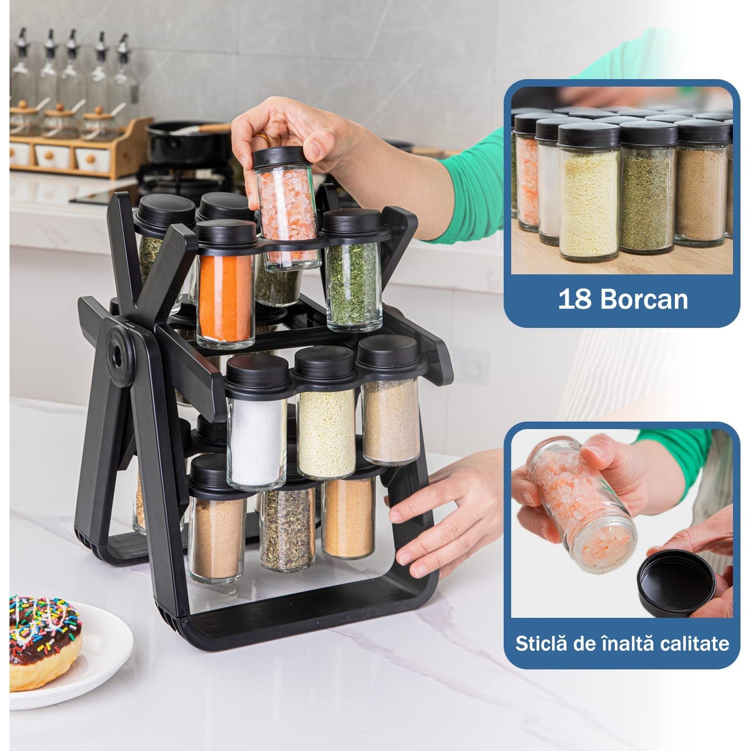 Cumpara Set 18 Recipiente Condimente cu Suport Rotativ – Organizare și ...