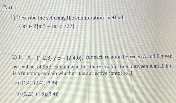 Solved Part 1 1) Describe the set using the enumeration | Chegg.com