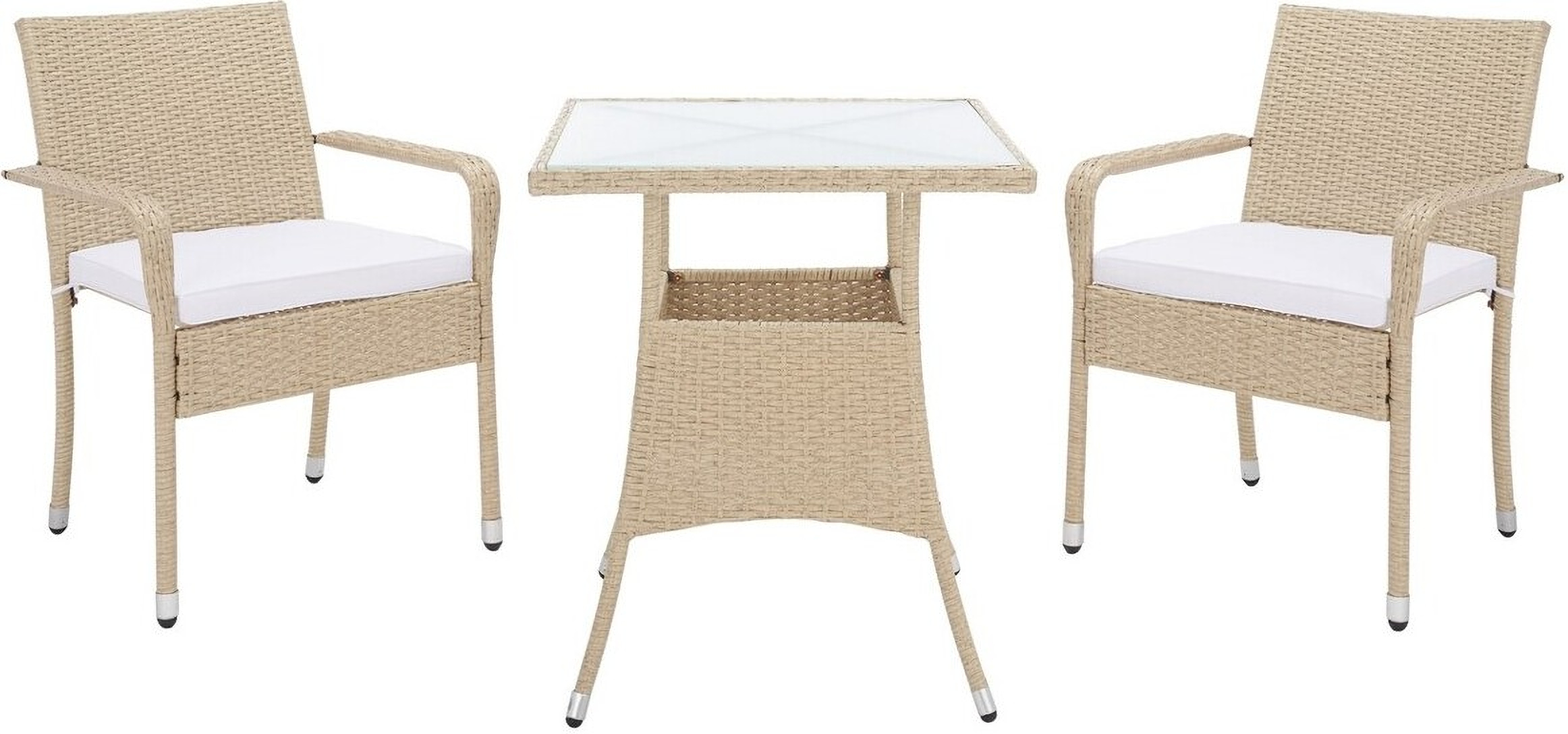 SAFAVIEH Laban 3 Piece Outdoor Patio Bistro Set, Natural/White, Porch ...