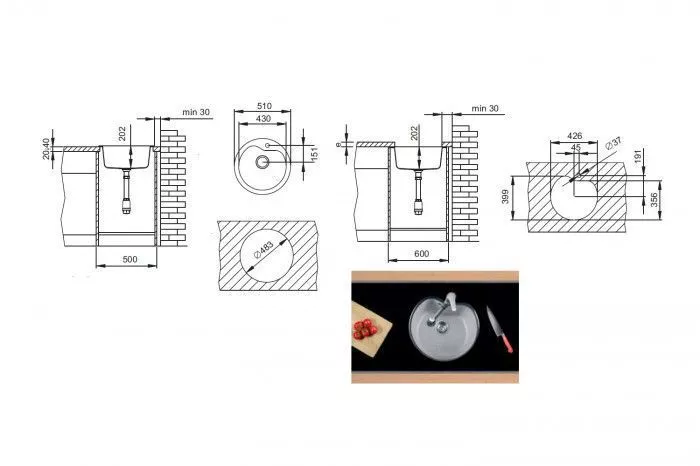 Set Pyramis Round DUROTHEK si baterie dimensiune 510mm adancime 200mm ...