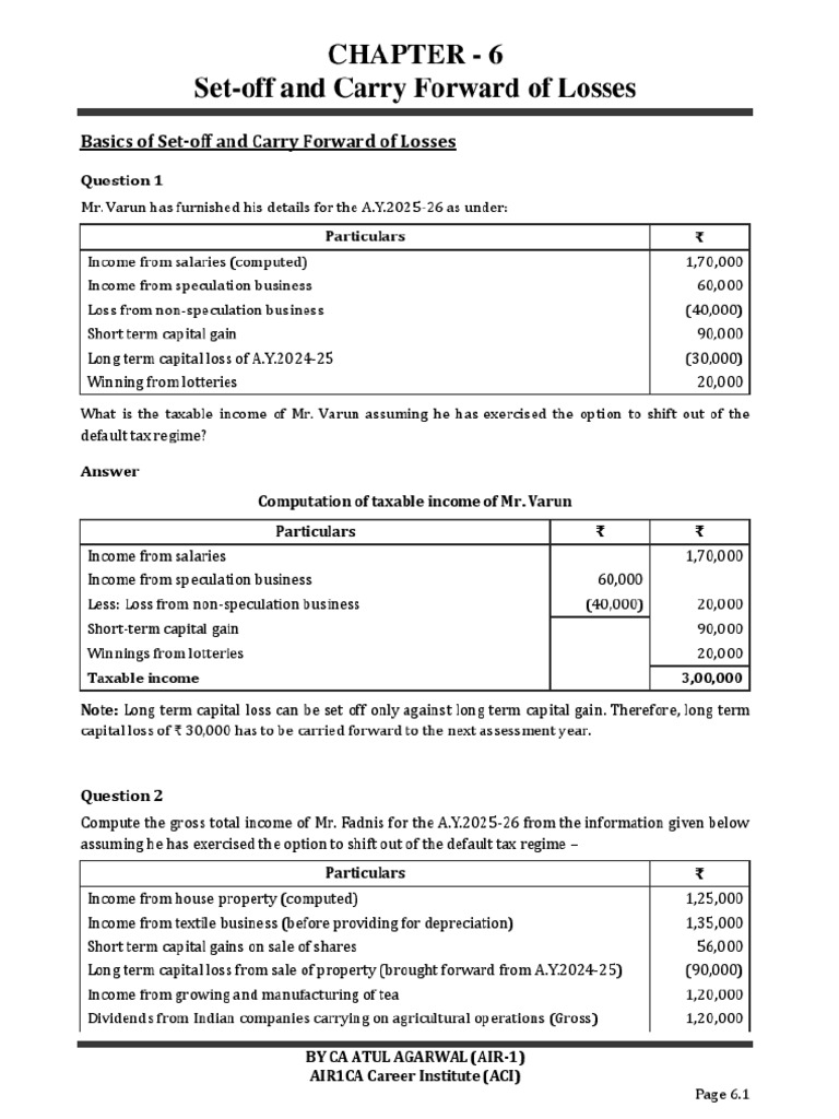 10 Setoff and Carry Forward - When there is a loss in one or more head ...