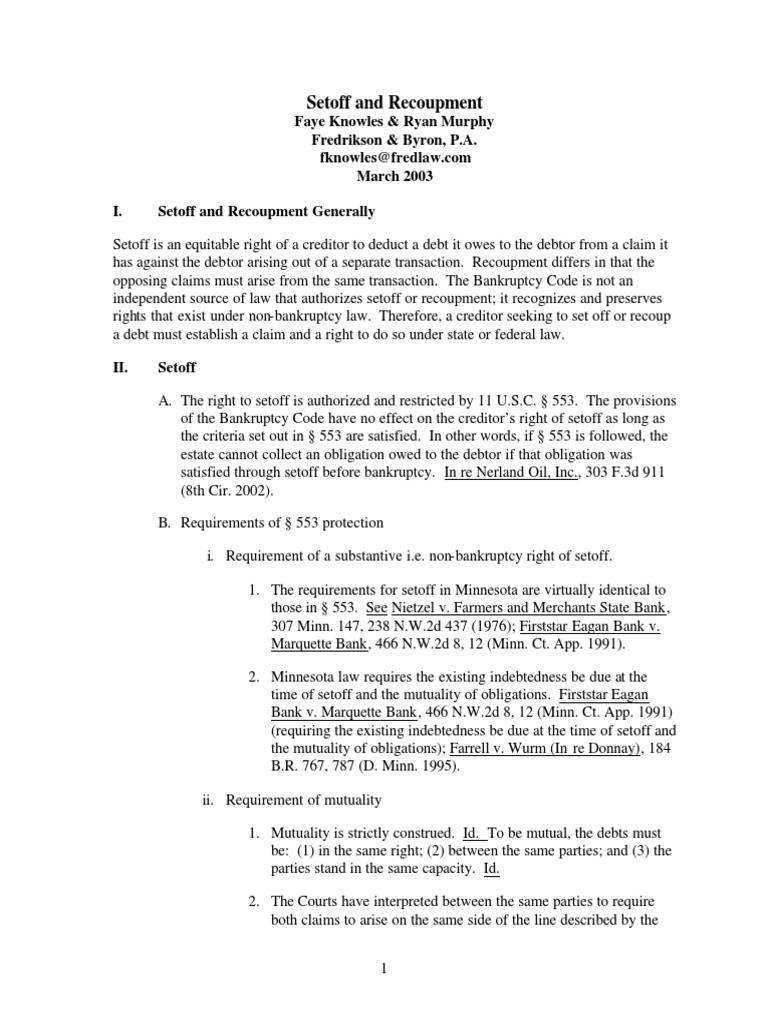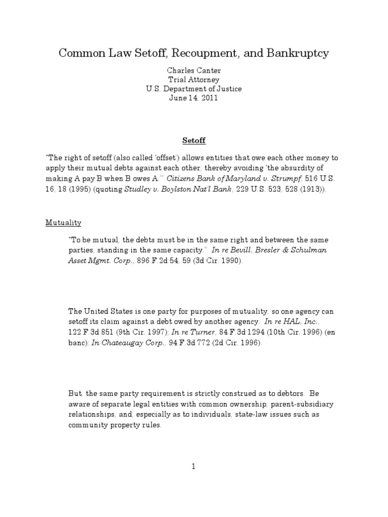 Understanding Setoff and Recoupment in Bankruptcy | PDF | Bankruptcy ...