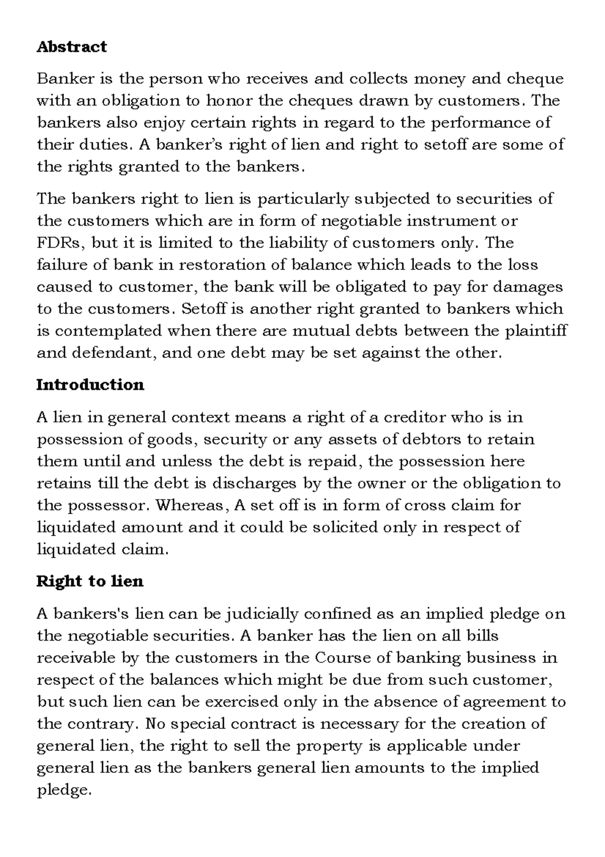 Banker's Rights: Lien and Setoff Explained (Banking Law 4) - Studocu
