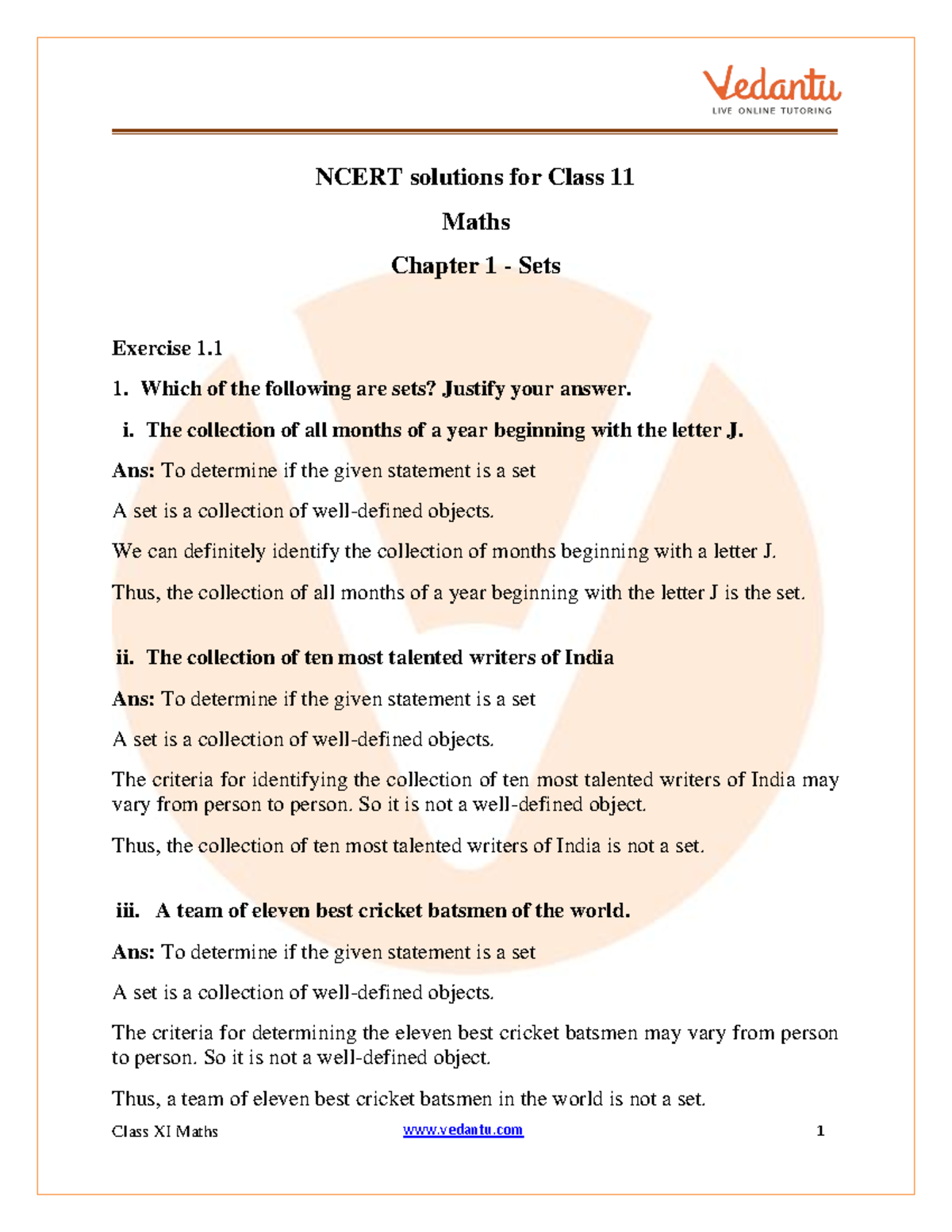 Ncert Solutions Class 11 Maths Chapter 1 Sets - NCERT solutions for ...