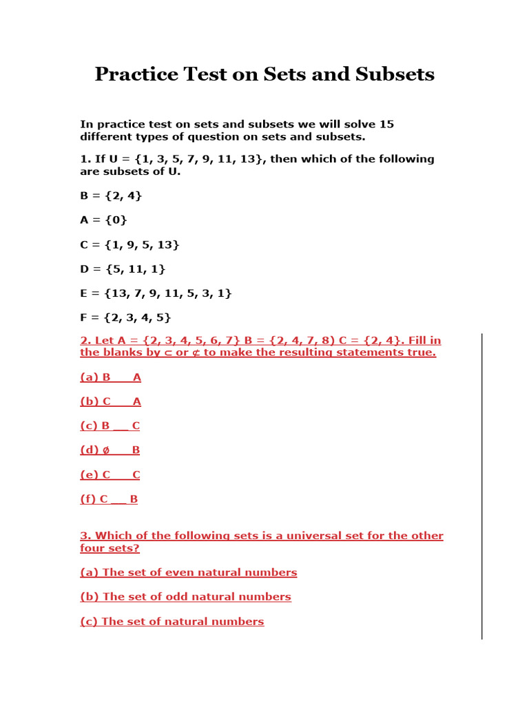 Solved In practice test on sets and subsets we will solve 15 | Chegg.com