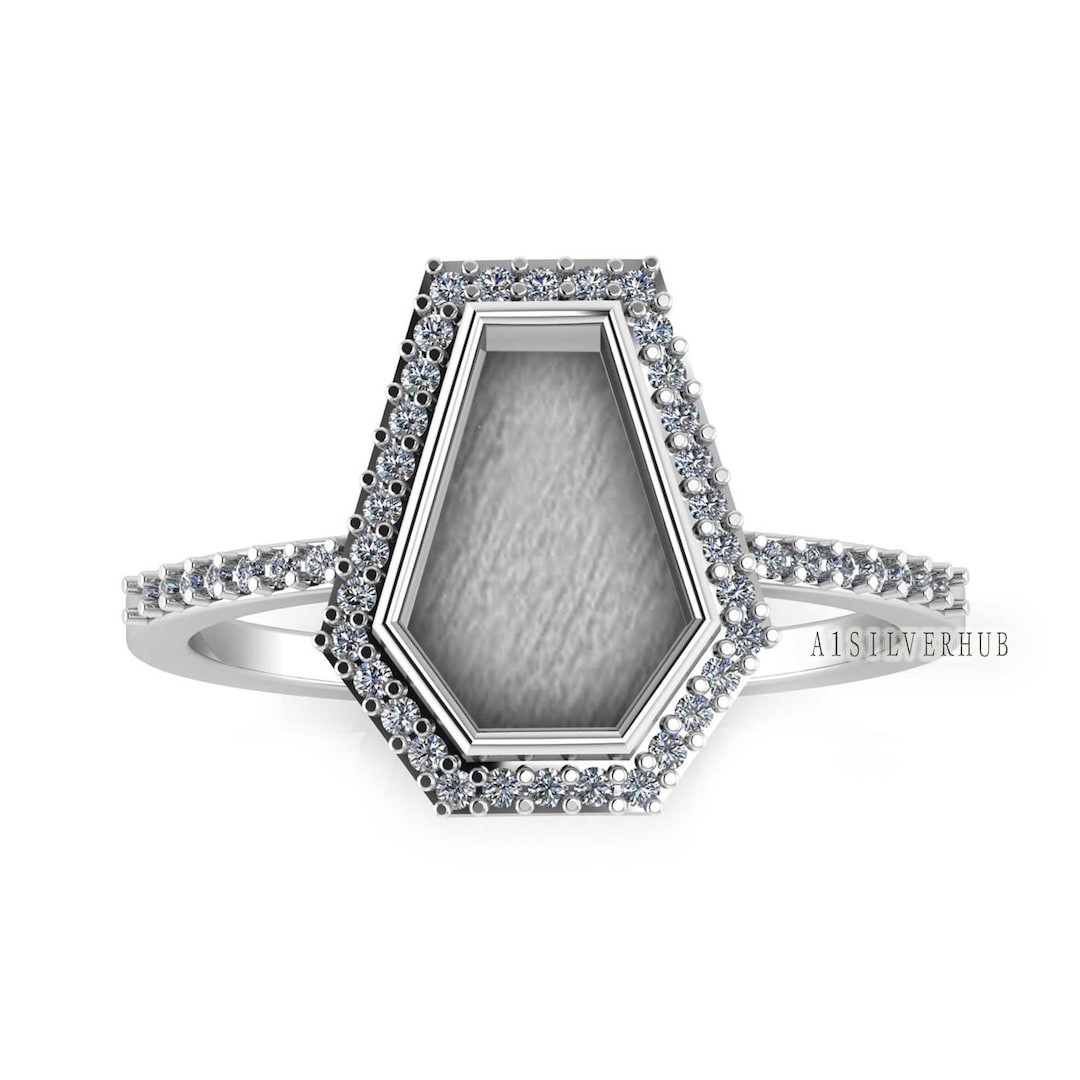 925 Sterling Solid Silver 10x7mm Coffin Blank Bezel With Zircon Setted ...