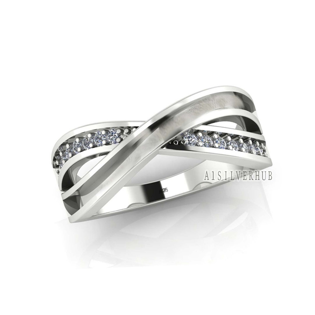 925 Sterling Solid Silver Infinity Ring With Blank Bezel and Zircon ...