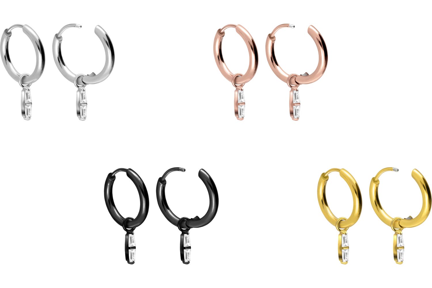 Surgical steel ear clicker creoles 2 SETTED CRYSTAL RECTANGLES ...