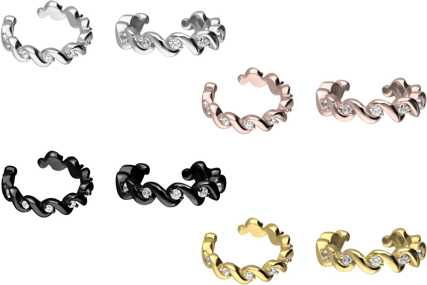 Surgical steel fake ear cuff BRAIDED + SETTED CRYSTALS | PIERCINGLINE