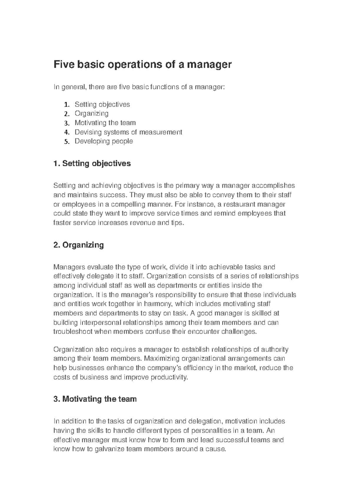Five basic operations of a manager - Setting objectives Setting and ...
