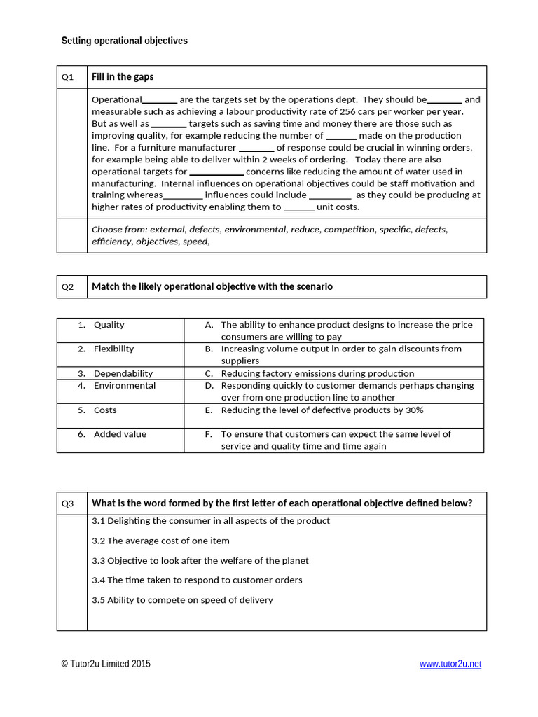Sheet 6 Operational Objectives | PDF
