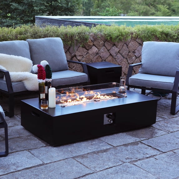 56" 3 Piece Fire Pit Set Rectangle Propane Fire Pit Table with Tank ...