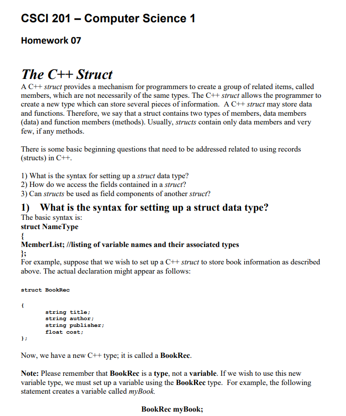 Solved What is the syntax for setting up a struct data | Chegg.com