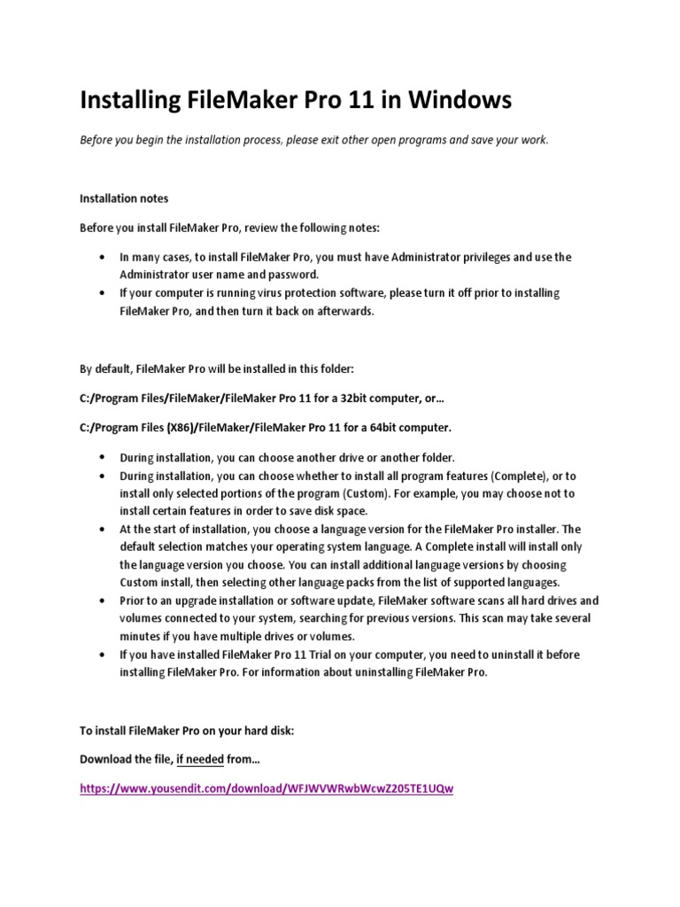 Install FileMaker Pro 11 on Windows | PDF | Installation (Computer ...
