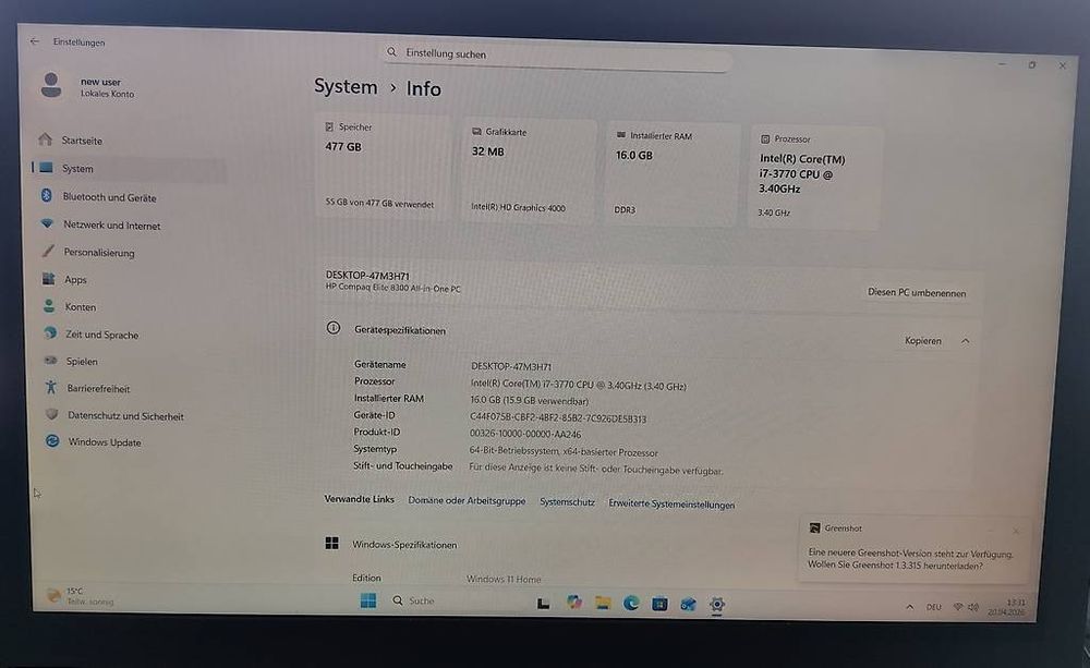 HP All-in-One PC, i7, 16GB RAM, SSD, sofort einsatzbereit (Gebraucht ...