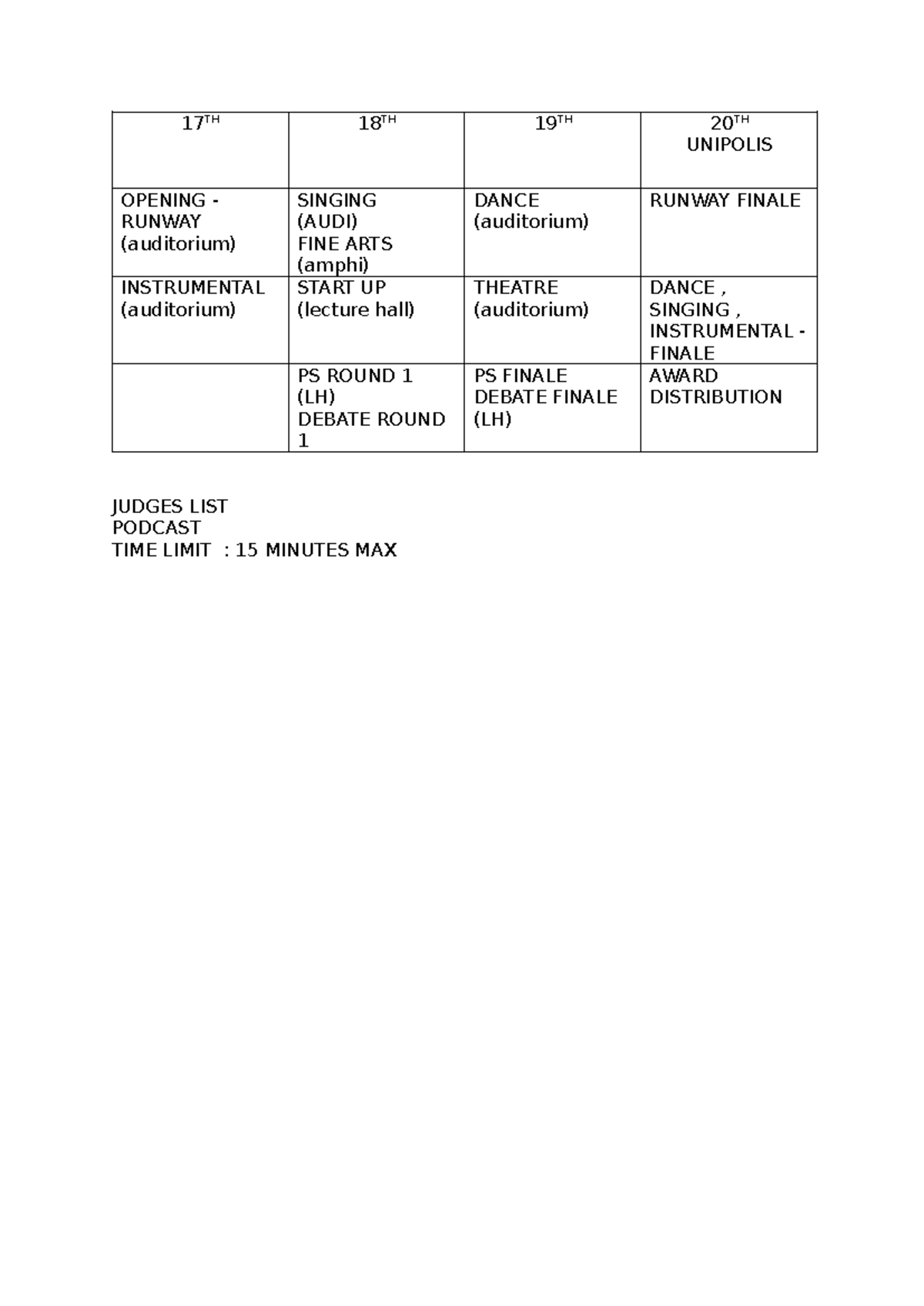 17TH - NOTES - 17 TH 18 TH 19 TH 20 TH UNIPOLIS OPENING - RUNWAY ...