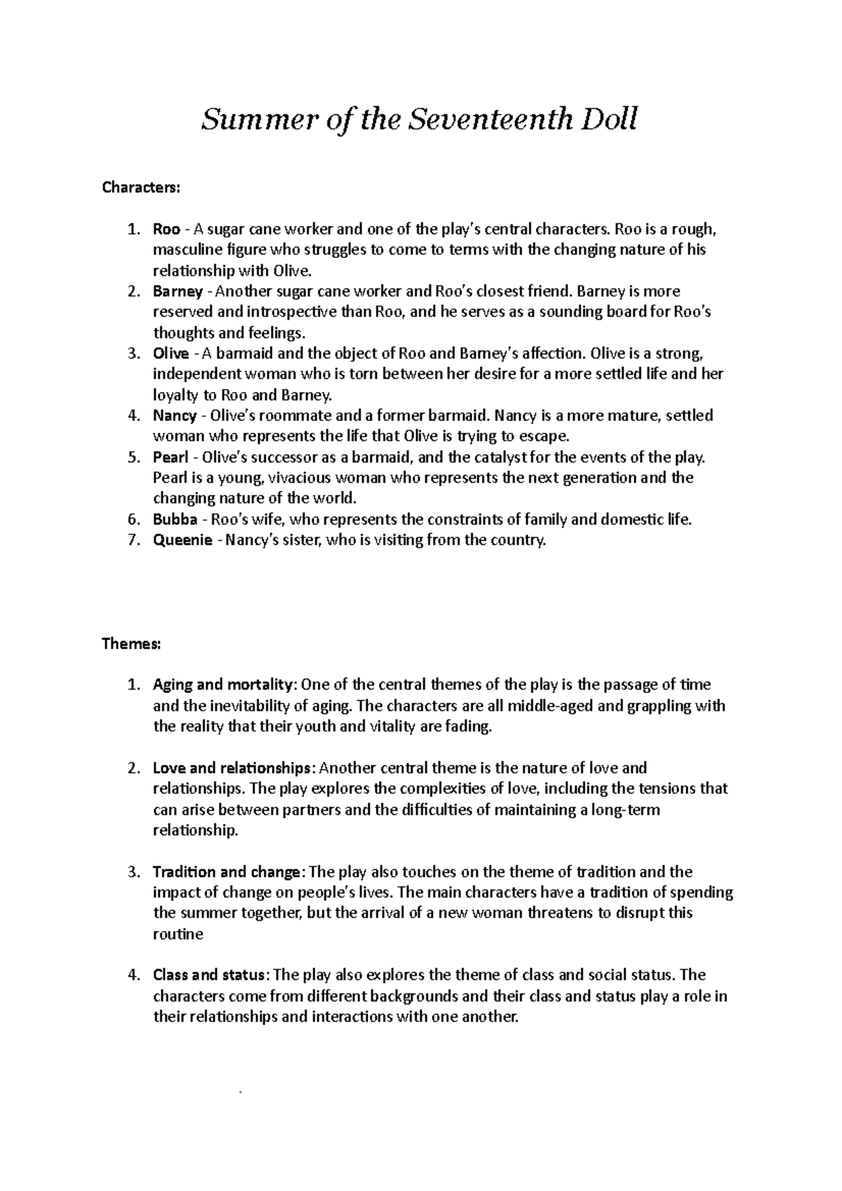 Summer of the Seventeenth Doll Notes - Summer of the Seventeenth Doll ...