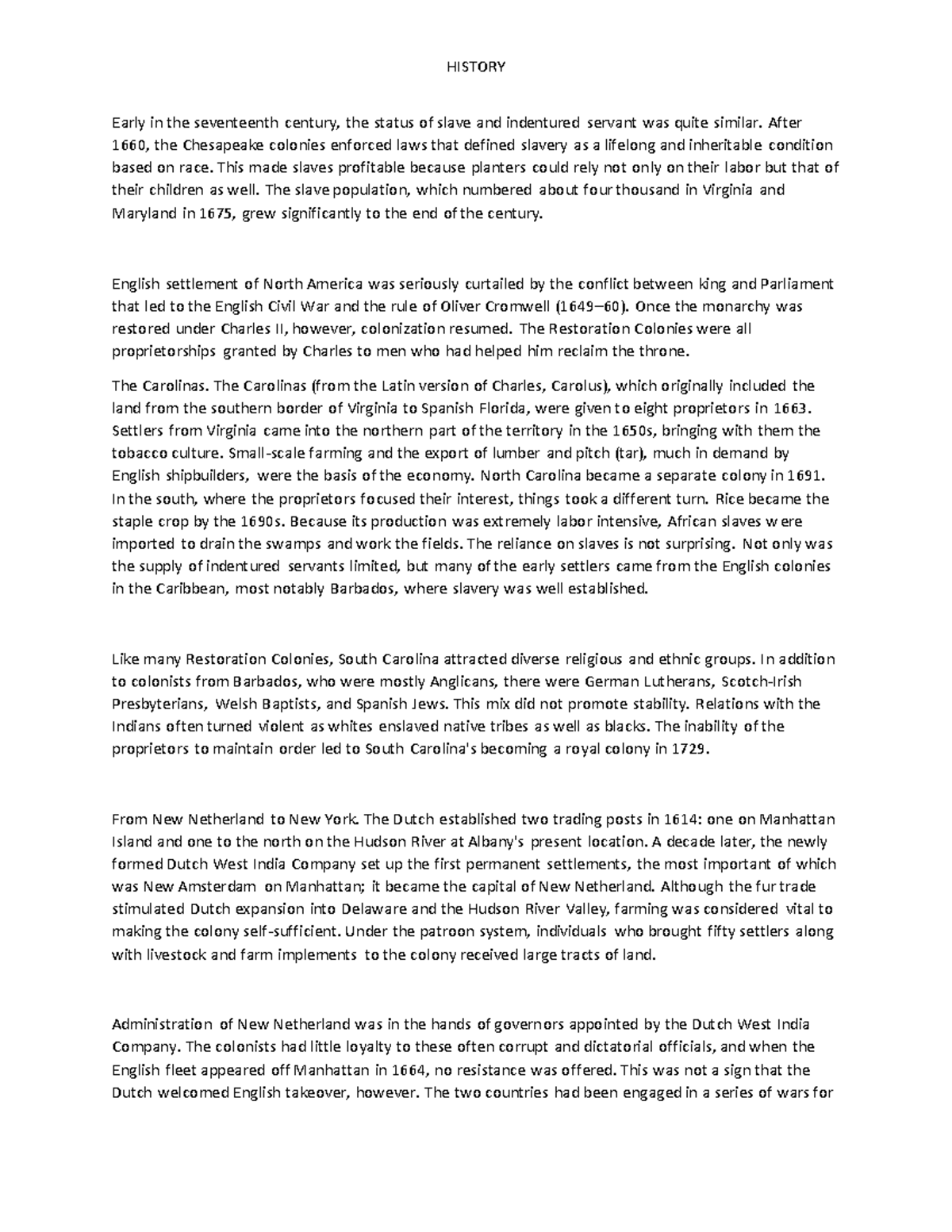 H 3 - NOTES - HISTORY Early in the seventeenth century, the status of ...
