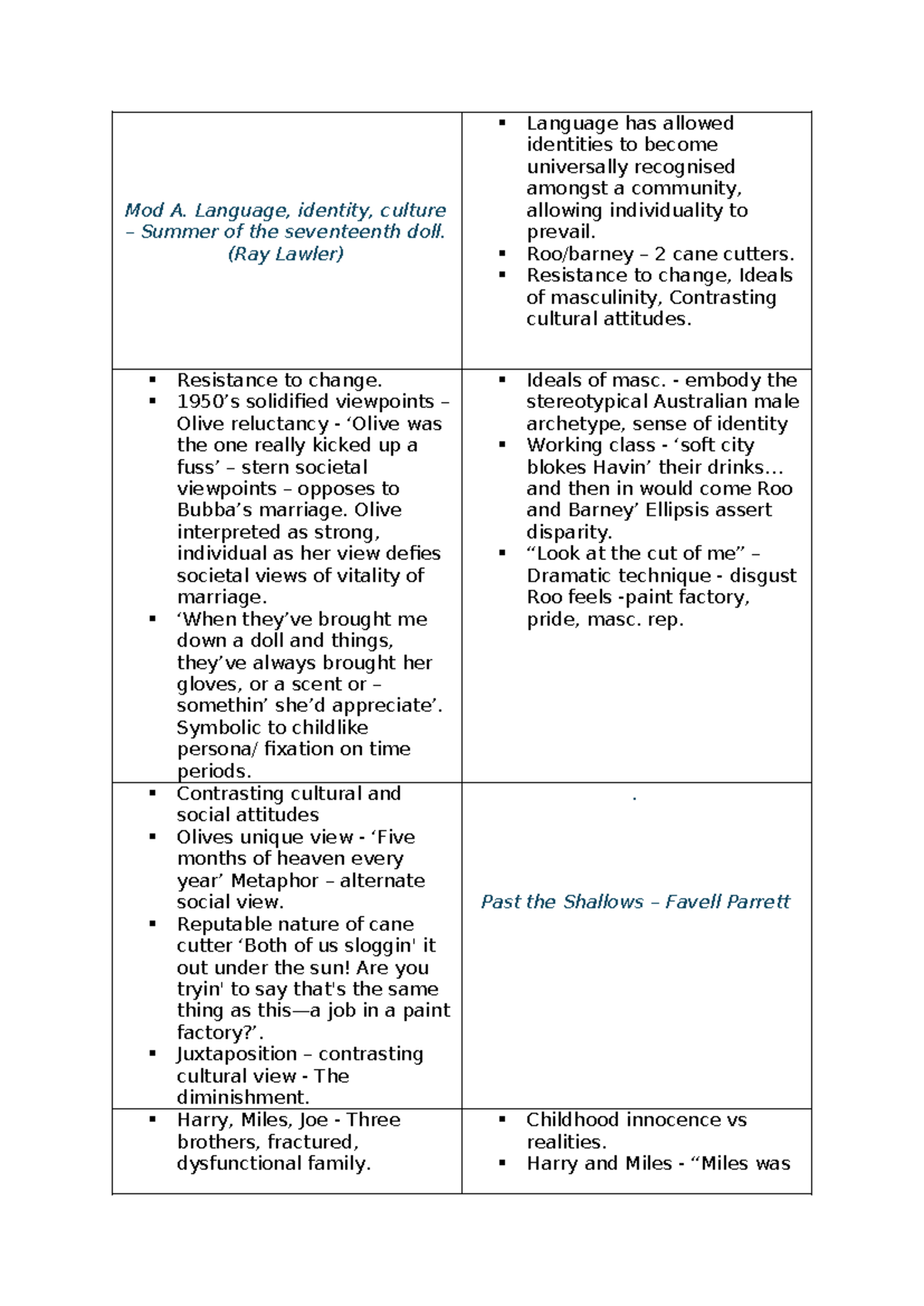 English trial notes - Mod A. Language, identity, culture Summer of the ...