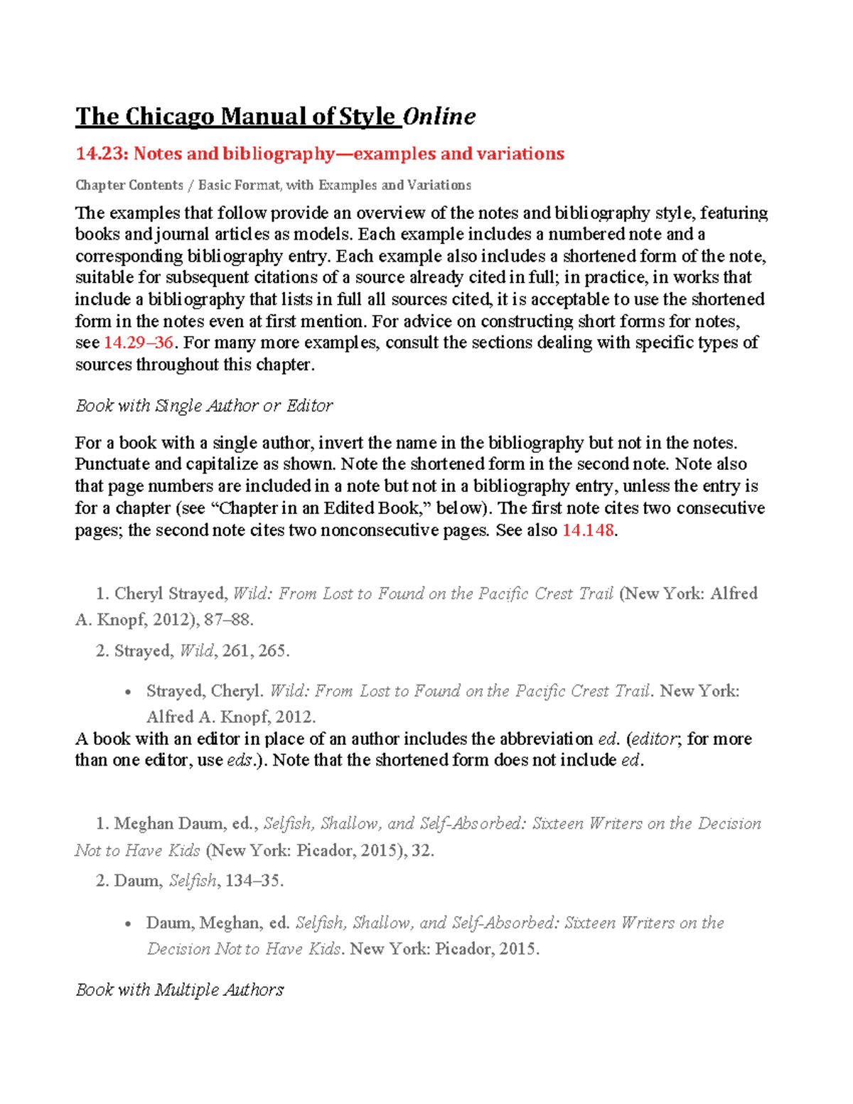 CMOS 17th Edition: Notes & Bibliography Overview - Studocu