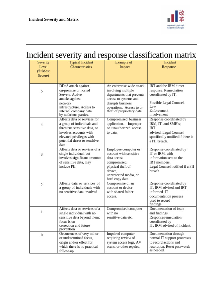 Kaizen-Incident Severity and Response Classification Matrix | PDF ...