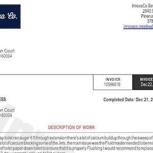 Plumbing work order invoice