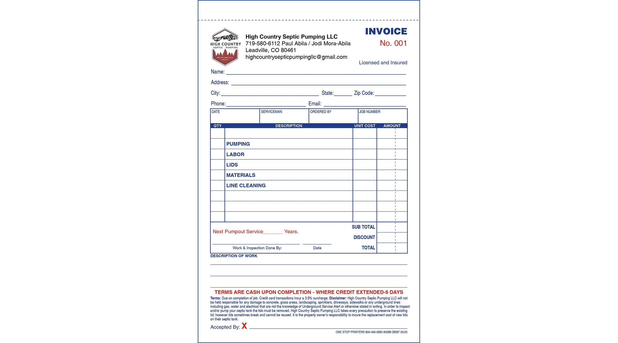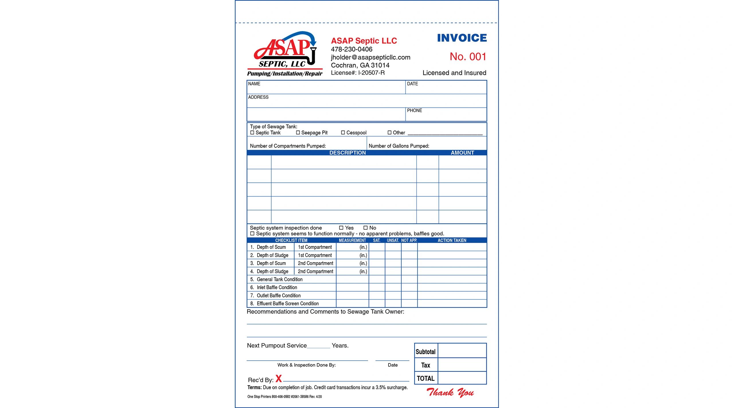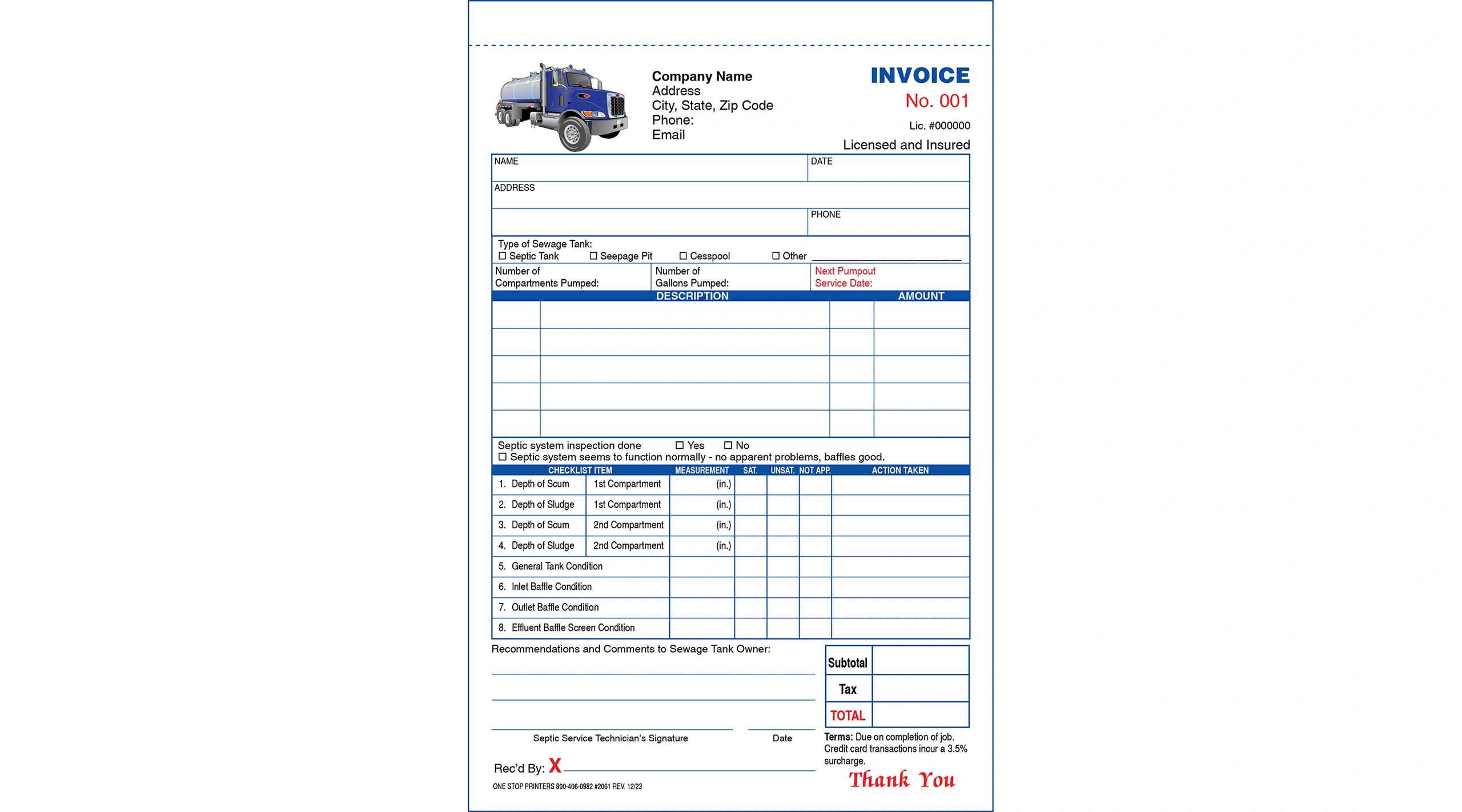 Custom Septic Tank Pumping Invoice Form TMG225 – CompuPrint USA