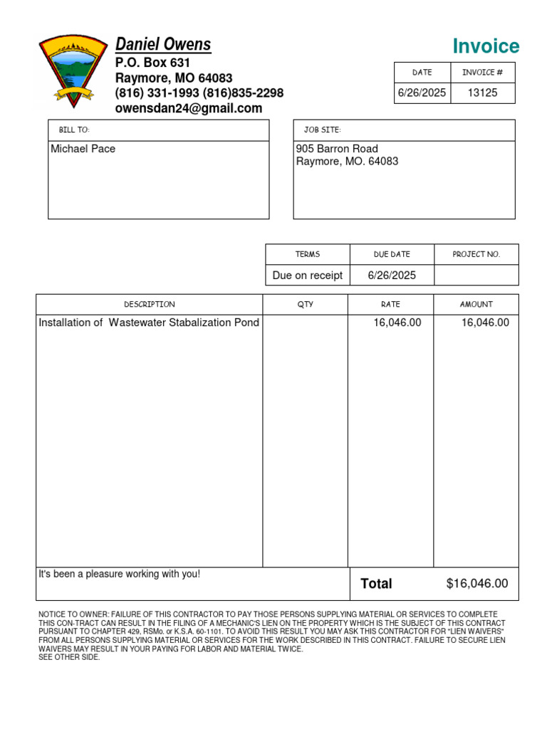 Pace Invoice For Septic Installation | PDF