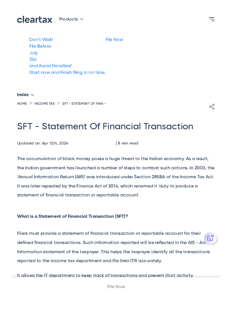 Understanding What is Statement of Financial Transaction (SFT), Who is ...