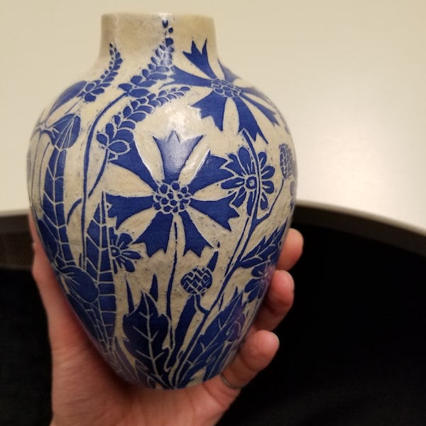 Small sgraffito flowers vase on Etsy, $30.00 | Sgraffito, Pottery ...