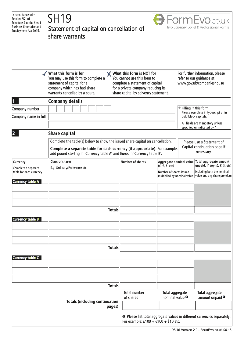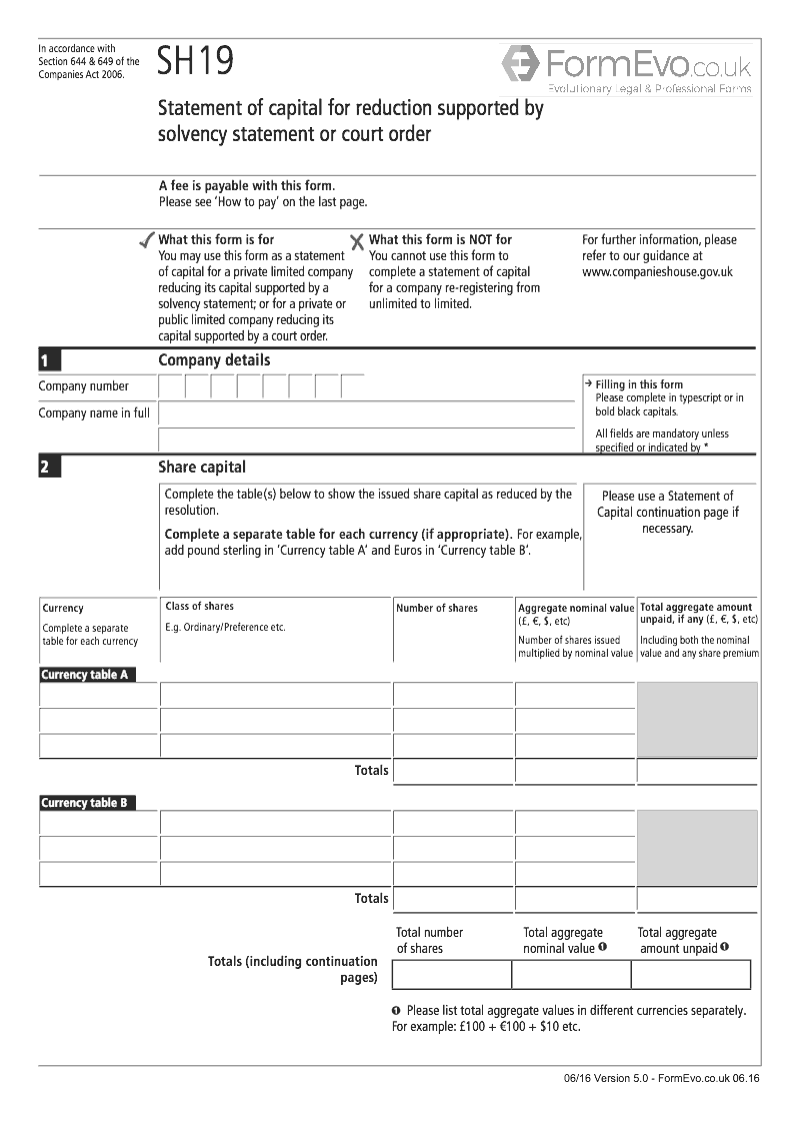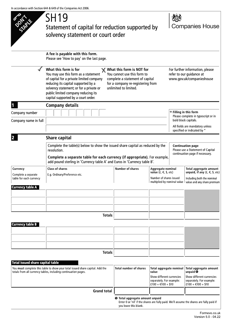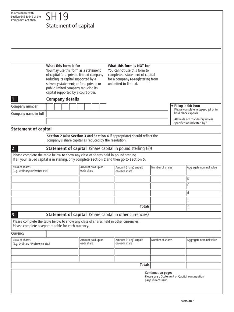Statement of capital when reducing capital in a company (SH19) - GOV.UK