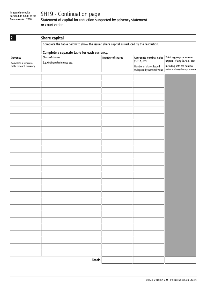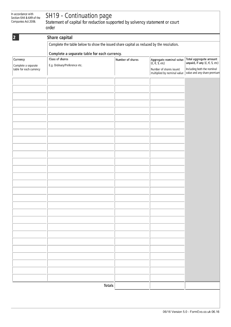 SH19 (Section 644) Continuation Page 2 Statement of capital (Prescribed ...